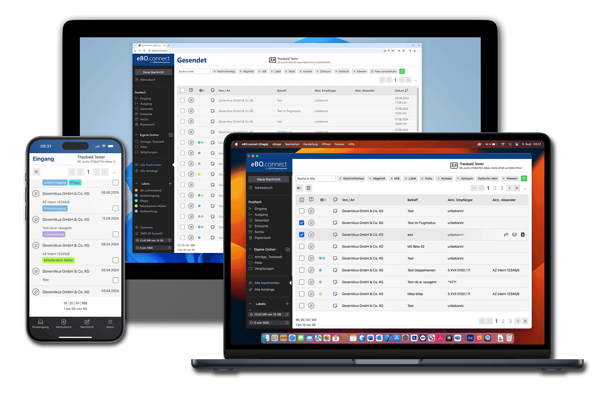 eBO.connect ist der einfache cloud-basierte Zugang zum elektronischen Bürger- und Organisationenpostfach (eBO). Ein persönliches eBO-Postfach bietet Ihnen einen direkten, sicheren und verschlüsselten Zugang zum elektronischen Rechtsverkehr mit Gerichten, Anwälten, Notaren, Behörden und Anstalten des öffentlichen Rechts wie z.B. Renten- und Krankenkassen.